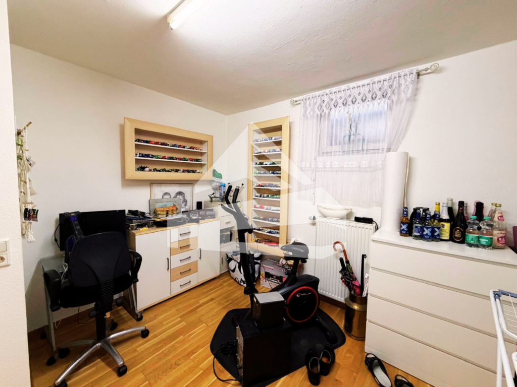 Die Einliegerwohnung im Vollkeller ist separat zugänglich und verfügt über ein Schlafzimmer, ein Tageslichtbad mit Wanne, Dusche, WC und Handtuchheizung, eine Küche mit Einbauküche sowie ein Wohnzimmer mit Zugang zur eigenen Terrasse von etwa 10 m². Der Keller beinhaltet zudem den Heizungsraum mit Öl-Zentralheizung (Brenner erneuert 2016) und einen 10.000-Liter-Öltank mit regelmäßiger TÜV-Prüfung.